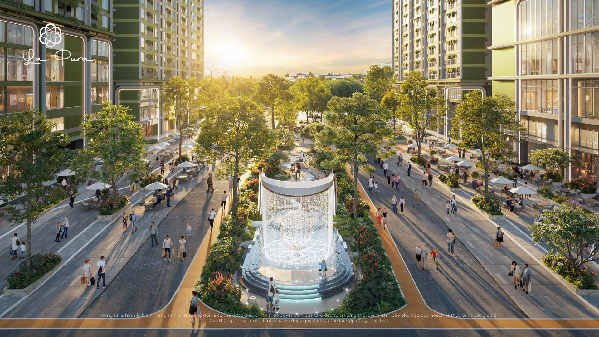 Với thiết kế phân tầng cao độ, cảnh quan tại La Pura mở ra tầm nhìn thoáng rộng, hài hòa giữa mỹ quan và công năng phục vụ. Chuỗi tiện ích được đan cài giữa những mảng xanh, xóa mờ khoảng cách giữa nhân tạo và tự nhiên.